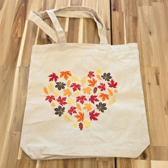 Torba bawełniana z haftem "SERCE Z LIŚCI" - rozmiar mały - 38x42x8cm