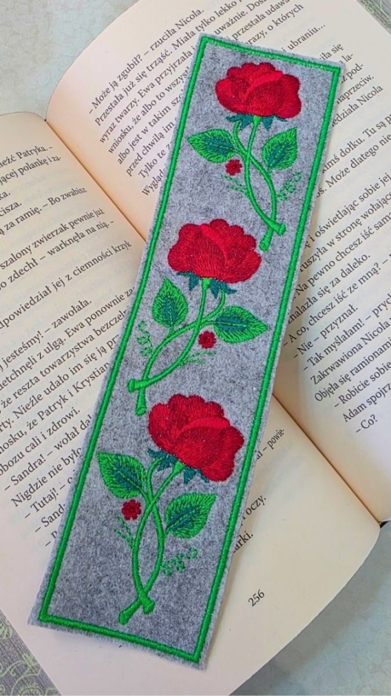 Zakładka do książki z filcu z haftem „Różane Pole”